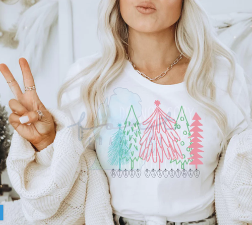 Scribble Trees Merry Christmas Bulbs Pink or White