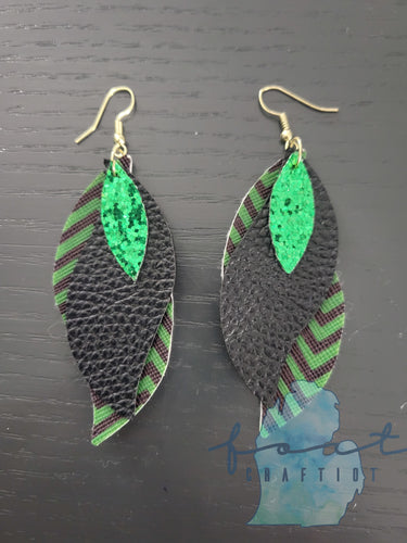 Handmade faux leather/canvas/glitter earrings. They range in size from 1.5" - 3". All are handmade, custom pieces. If you don't see what you're looking for, message me and I can make it!