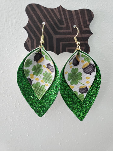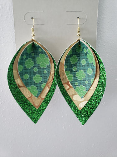 3" Triple layer St. Patrick's Day Shamrock Earrings