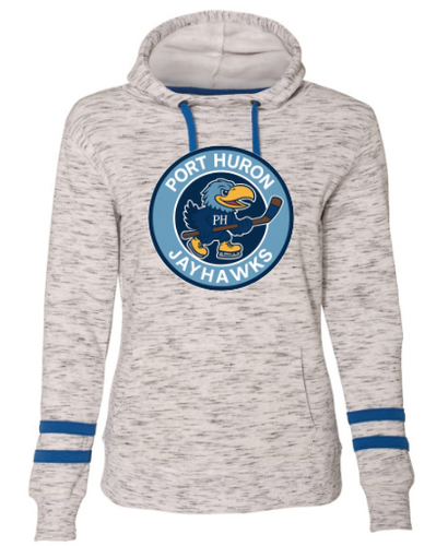 Port Huron Jayhawks Womens Melange Fleece Striped Sleeves Hooded Sweatshirt