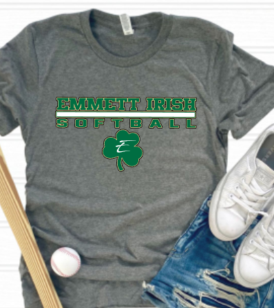 Emmett Irish Softball With Clover shirt, available on unisex softsyle tee, long sleeve, crewneck sweatshirt, hoodie, or dri-fit.