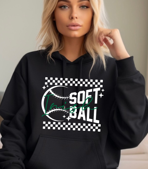 Emmett Irish Softball Checkered shirt, available on unisex softsyle tee, long sleeve, crewneck sweatshirt, hoodie, or dri-fit.