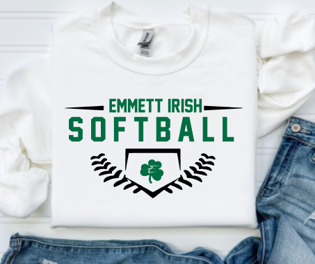 Emmett Irish Softball Stitches With Logo shirt, available on unisex softsyle tee, long sleeve, crewneck sweatshirt, hoodie, or dri-fit.