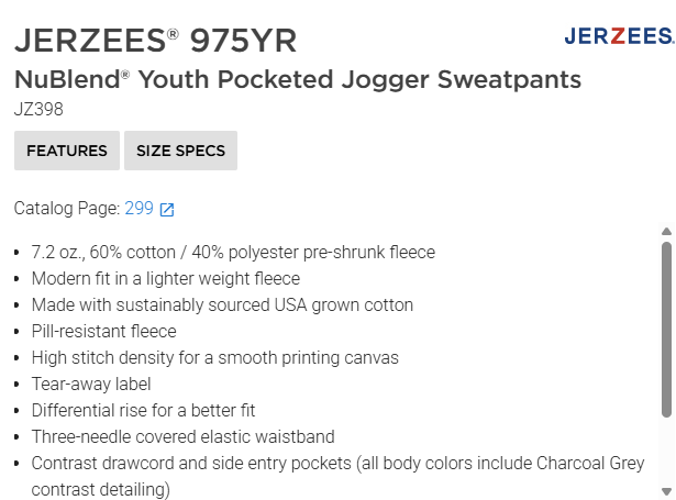 - 7.2 oz./yd² (US), 12 oz./L yd (CA), 60/40 cotton/polyester