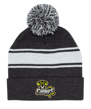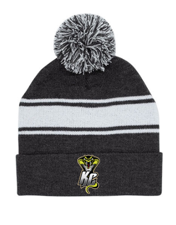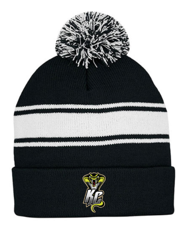 Kimball Cobras Baseball Striped Pom Cuff beanie with logo patch.