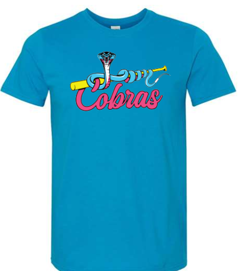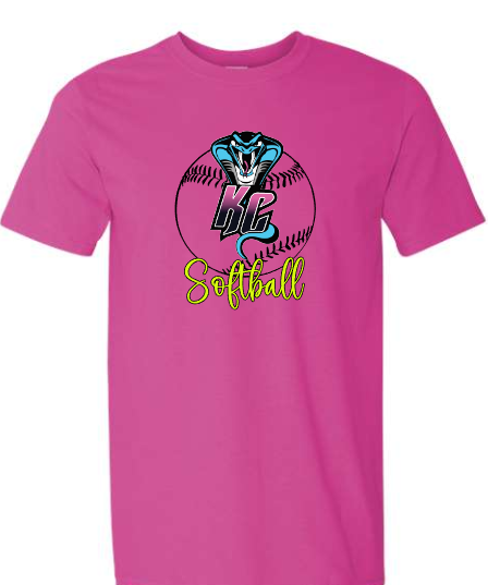 Kimball Cobras Softball Unisex Gildan Softstyle T-Shirt (heavy cotton for youth) with full front print. Personalization can be added to the back.