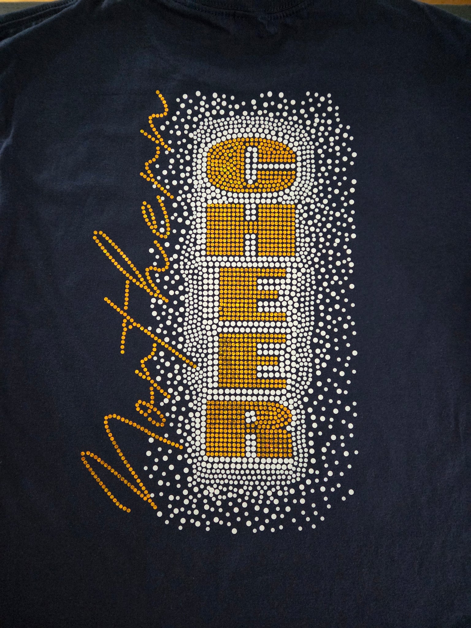 Northern Cheer Sparkle (flat sequins) available on unisex sized tee, crewneck, or hoodie. Extra Large print on back. Pocket size PHN on front.