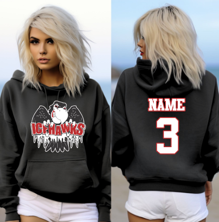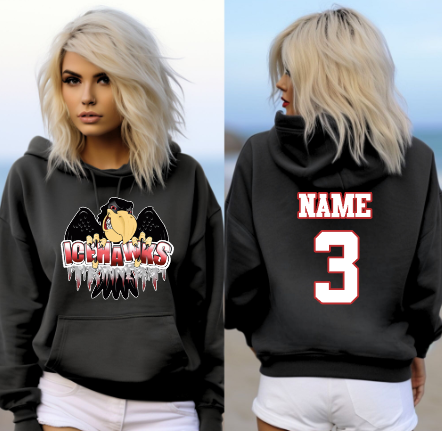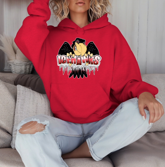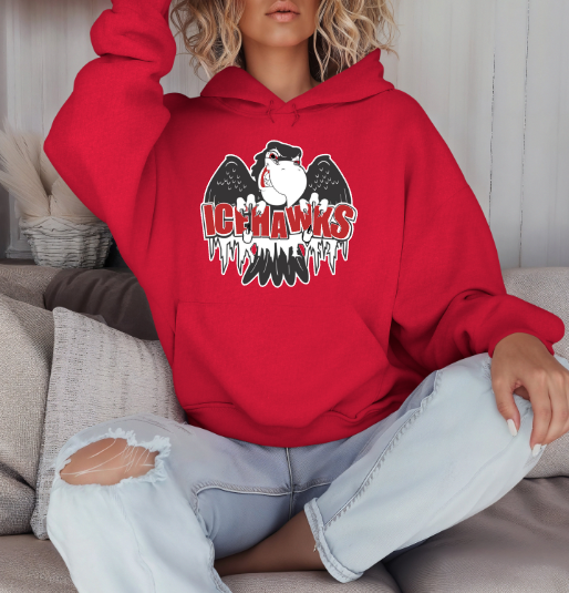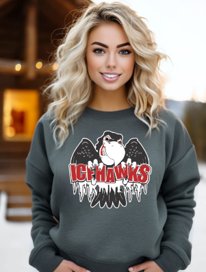Port Huron Icehawks Full Size Logo shirt, available on unisex softsyle tee, long sleeve, crewneck sweatshirt, hoodie, or crop top (limited colors). Default Full-Color logo, leave in NOTES if you'd like monochromatic.