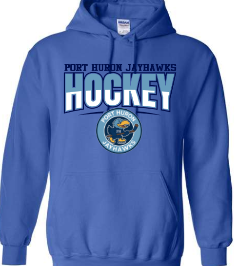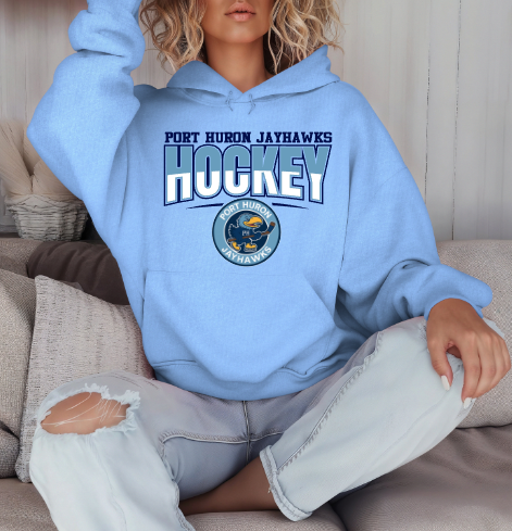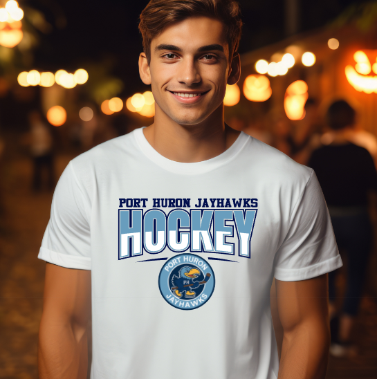 Port Huron Jayhawks Split Hockey shirt, available on unisex softsyle tee, long sleeve, crewneck sweatshirt, hoodie, or dri-fit.
